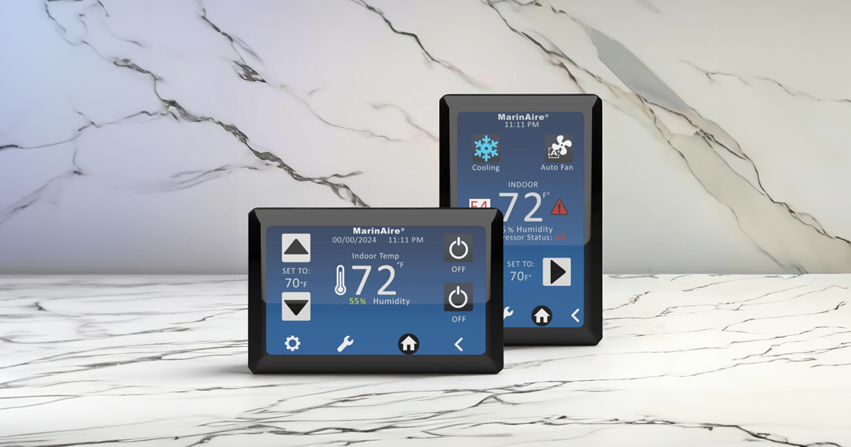 MarinAire sets the standard in the marine air conditioning industry with cutting-edge patented technology. Our units are engineered for durability and designed with our customers in mind. They’re the only units featuring built-in pressure gauges, and a built-in sound shield. Included with every system is a complimentary touchscreen Wi-Fi thermostat.